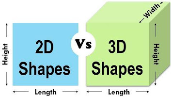 2D AND 3D SHAPES SHAPES: The shape can be defined as the boundary or outline of an object. In general, we can see shapes such as triangles, squares, and circles everywhere around us. Thus shapes have only lenght and breadth are 2D or two-dimensional. while other shapes such as the shape of a house have length, breadth and height. Thus shapes are 3D or three-dimensional. 2D SHAPES: A 2D shapes has two dimensions lenght and breadth. examples: Rectangle, Square, Circle, Triangle. 3D SHAPES: A 2D shapes has three dimensions lenght, breadth and height. examples: Cuboid, Cube, Cylinder, Sphere. See the above image the 1st one is circle and it is in 2D shape and the 2nd one is sphere and it is in 3D shape. Here are some 2d and 3d shapes Differences between 2D and 3D shapes You (or the children in your class) mig...